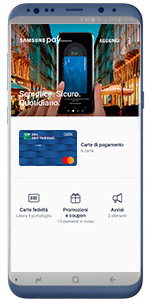 Aggiungi la tua carta a Samsung Pay e inizia a fare acquisti con un semplice “swipe”.